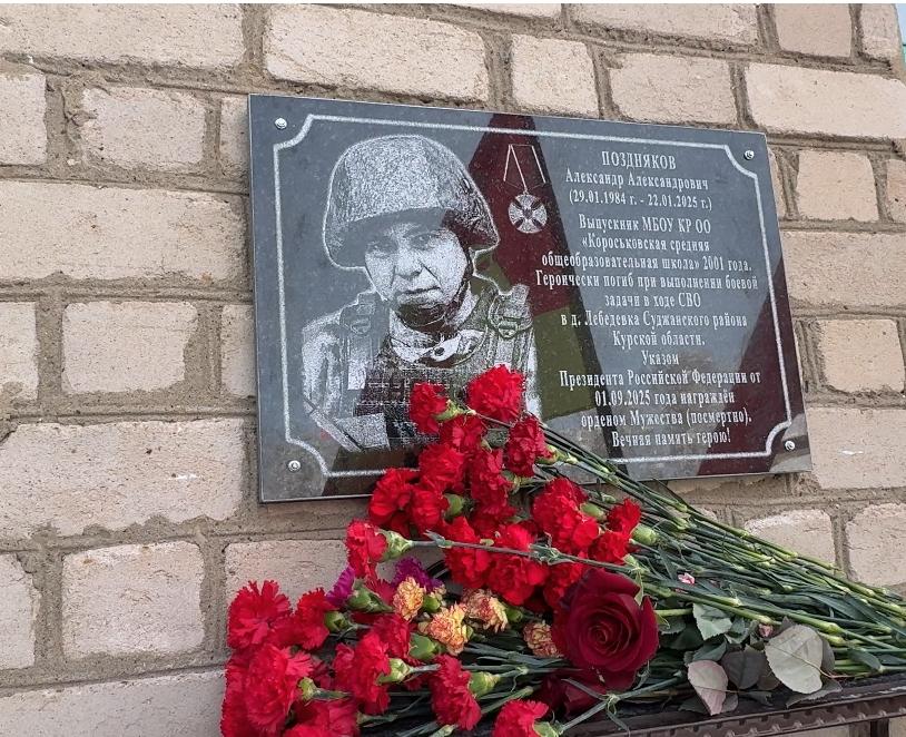 30 января 2026 года  в МБОУ «Короськовская средняя общеобразовательная школа» состоялась торжественная и памятная церемония. Глава Кромского района Андрей Иванович Усиков и Глава Короськовского сельского поселения Александр Александрович Савостиков открыли мемориальную доску и Парту Героя в память о подвиге нашего земляка, Александра Александровича Позднякова, героически погибшего при исполнении служебного долга в ходе специальной военной операции. За самоотверженность, мужество и отвагу, проявленные при исполнении воинского долга в ходе специальной военной операции, Указом Президента Российской Федерации от 01 сентября 2025 года Александр награждён «Орденом Мужества» посмертно. На церемонии присутствовали родные Александра, в глазах которых немеркнущая любовь, боль и скорбь переплелись воедино. Рядом с ними школьники, учителя и приглашённые гости. Установленные мемориальные объекты станут частью образовательного пространства школы, наглядным уроком мужества и патриотизма для подрастающего поколения. Они будут напоминать ученикам, что герои — среди нас, а их имена и подвиги должны жить в веках.