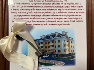 Памятный ордер на собственную квартиру жительнице Кромского района