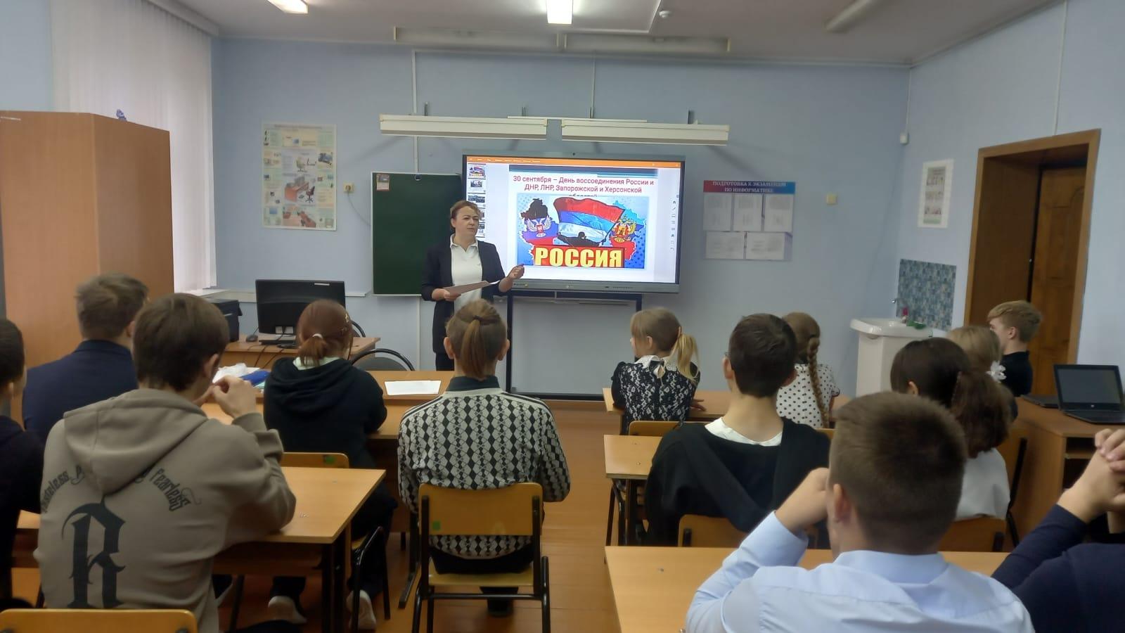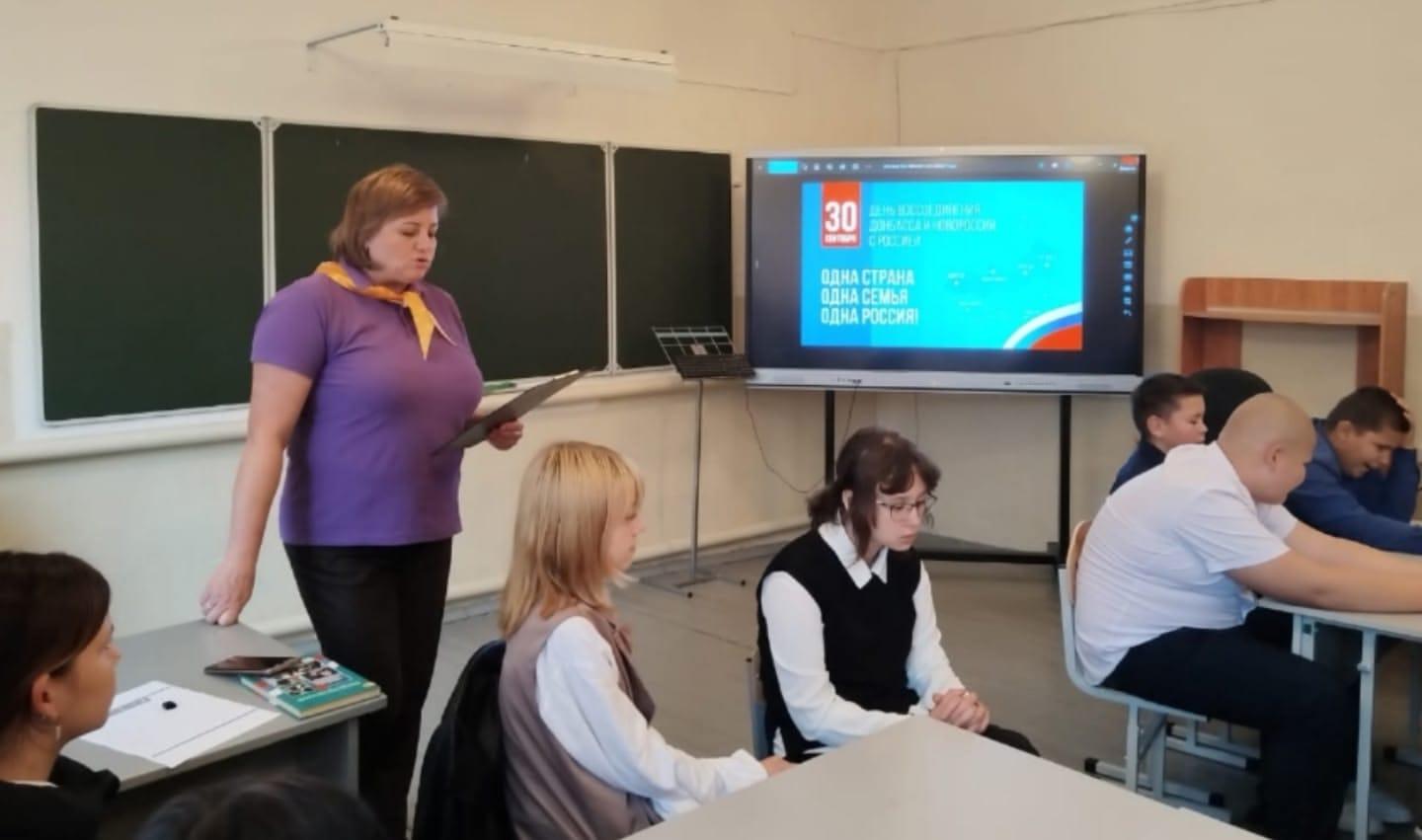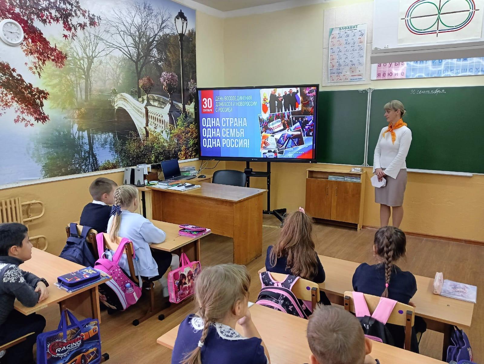 30 сентября 2022 года войдет в новейшую историю как день принятия в Российскую Федерацию Донецкой Народной Республики, Луганской Народной Республики, Запорожской области и Херсонской области на правах субъектов Российской Федерации. 30 сентября 2025 года школах района прошли мероприятия, посвященные этой дате. Они проведены в разных форматах, но все прошли в духе патриотизма и любви к своей Родине, под лозунгами: «Мы – Едины!», «Мы – одна страна! Учащиеся узнали о важности этого события, о трудном пути, который прошли в течение 8 лет жители регионов, добиваясь независимости и отстаивая свое право говорить на русском языке.