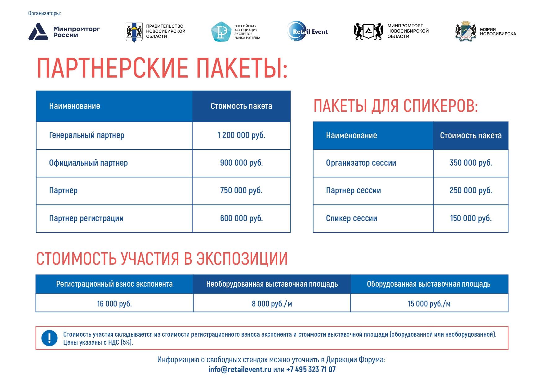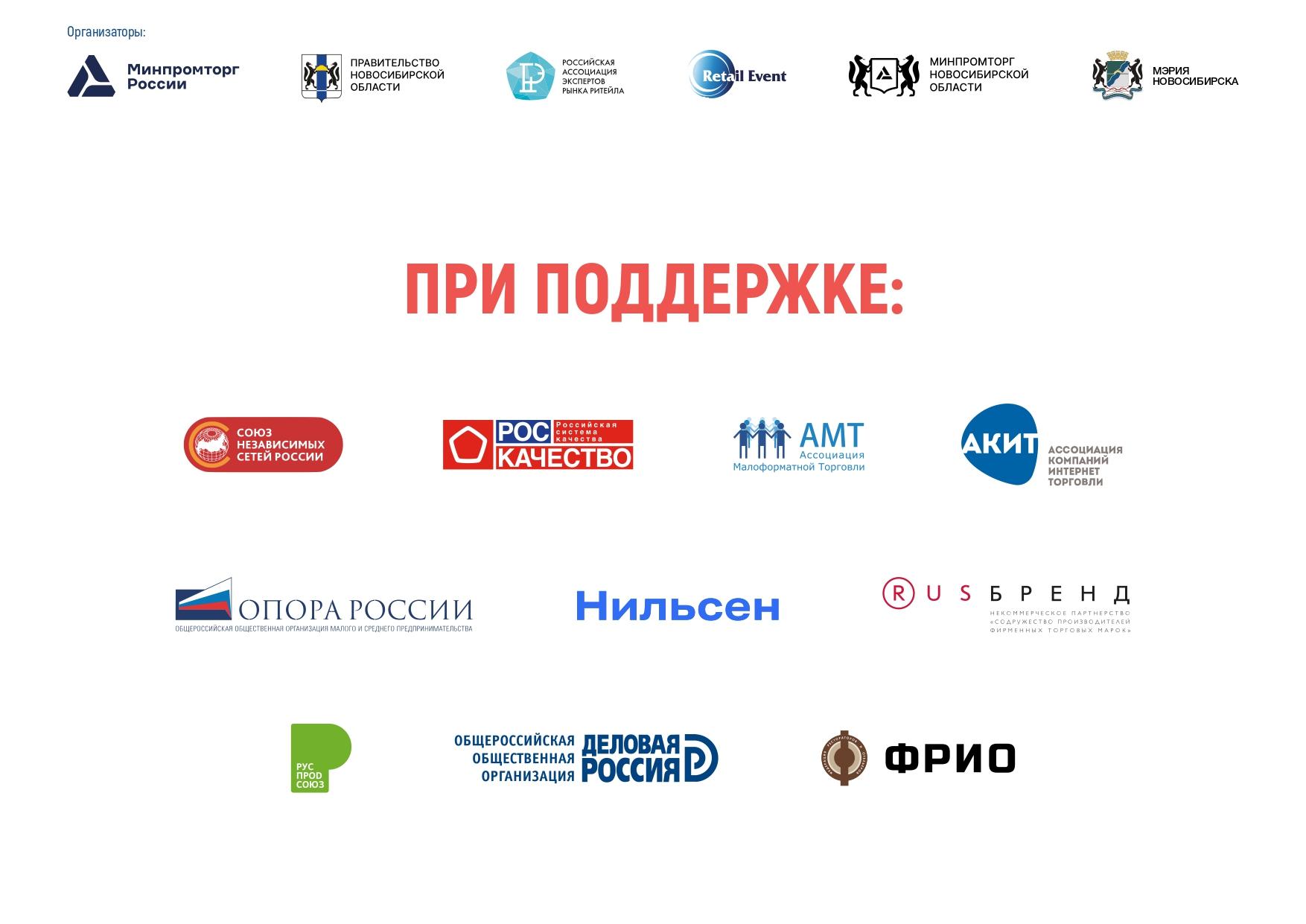 Организаторы мероприятия: Министерство промышленности и торговли Российской Федерации, Правительство Новосибирской области, Министерство промышленности, торговли и развития предпринимательства Новосибирской области, Мэрия Новосибирска и Российская Ассоциация экспертов рынка ритейла.