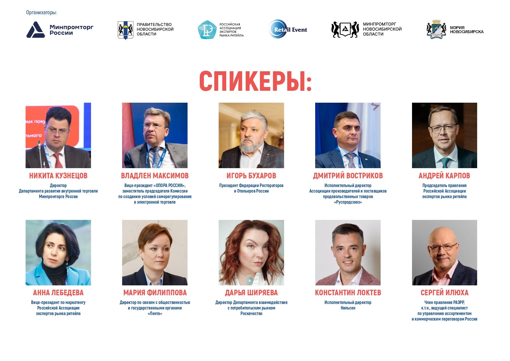В этом году форум станет эпицентром самых актуальных дискуссий, где соберутся лидеры ритейла, представители власти и топ-эксперты. В числе участников Никита Кузнецов, директор Департамента развития внутренней торговли Минпромторга России; Андрей Травников, губернатор Новосибирской области; Денис Рягузов, и.о. министра промышленности, торговли и развития предпринимательства Новосибирской области; Максим Останин, заместитель мэра города Новосибирска; Андрей Карпов, председатель правления Российской Ассоциации экспертов рынка ритейла; Игорь Бухаров, президент Федерации Рестораторов и Отельеров России, Владлен Максимов, вице-президент «ОПОРА РОССИИ»; Иван Бабухадзе, директор Союза независимых сетей России, Дмитрий Востриков, исполнительный директор Ассоциации производителей и поставщиков продовольственных товаров «Руспродсоюз»; Константин Локтев, исполнительный директор Нильсен.