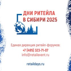 Участие в Межрегиональном Форуме «Дни ритейла в Сибири» бесплатное. Регистрация и деловая программа Форума на сайте: https://siberia.retaildays.ru/