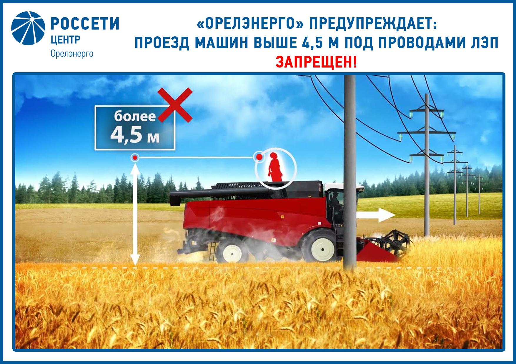 Филиал «Россети Центр» – «Орелэнерго» информирует сельскохозяйственных работников о необходимости соблюдения правил электробезопасности при проведении работ вблизи линий электропередачи (ЛЭП).