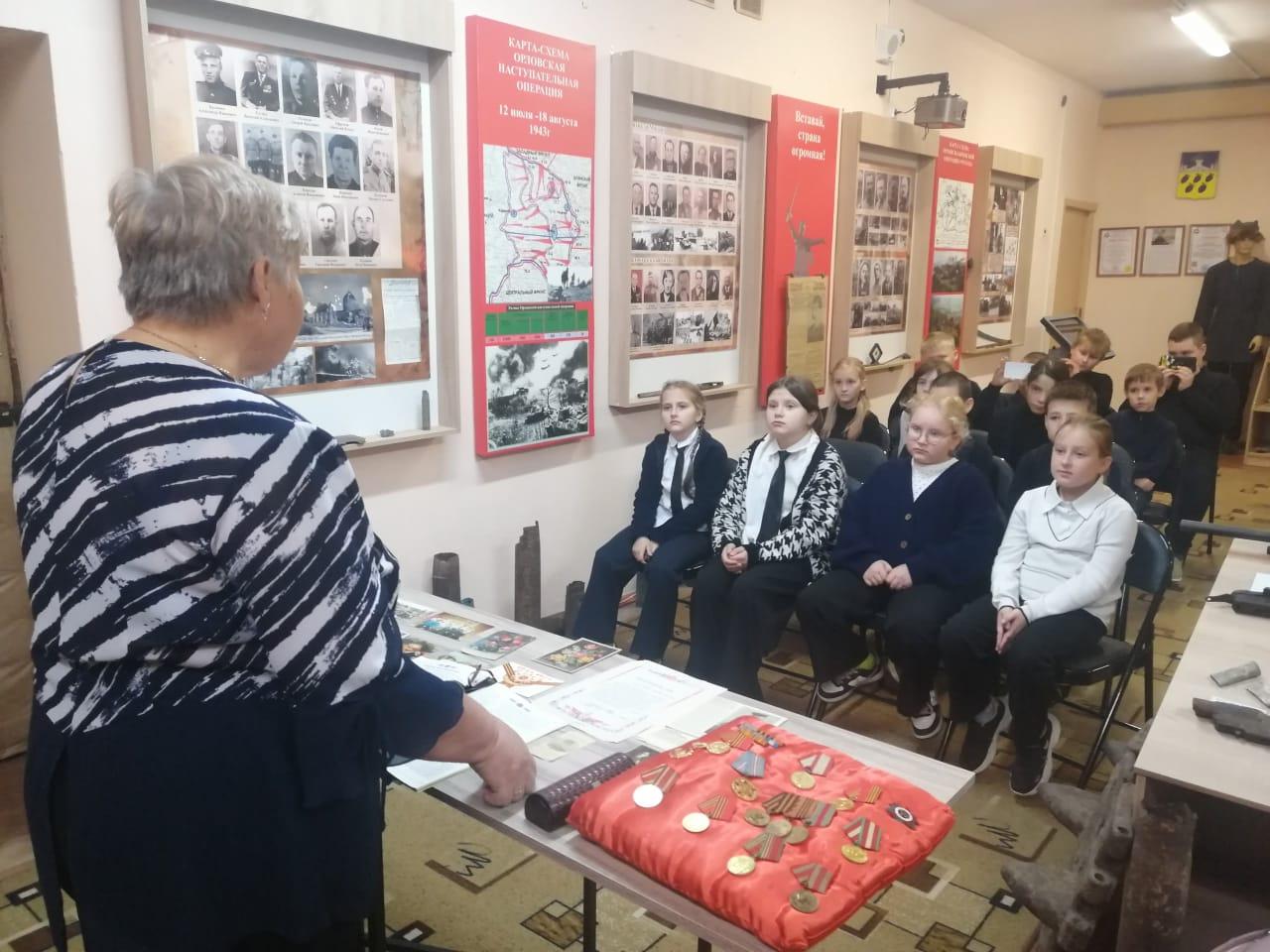 7 октября 2025 года в школьном музее МБОУ «Кромская НОШ» состоялась встреча обучающихся с дочерью участника Великой Отечественной войны В. Золотаревой. Она поделилась с детьми воспоминаниями о своем отце, рассказала об этапах военной биографии отца, обстоятельствах участия в сражениях, важных моментах фронтовой жизни, завершившихся победой над фашизмом. Особое внимание было уделено воспитанию чувства гордости за подвиги предков, формированию у учащихся понимания ценности мира и значимости памяти о великом историческом событии. Завершилось мероприятие минутой молчания.